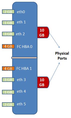 Let’s say you bought a CNA which gives you 4 virtual ports per physical port, let’s see how we can divide the bandwidth of this physical port amongst the virtual port to both Storage and Network Communication.