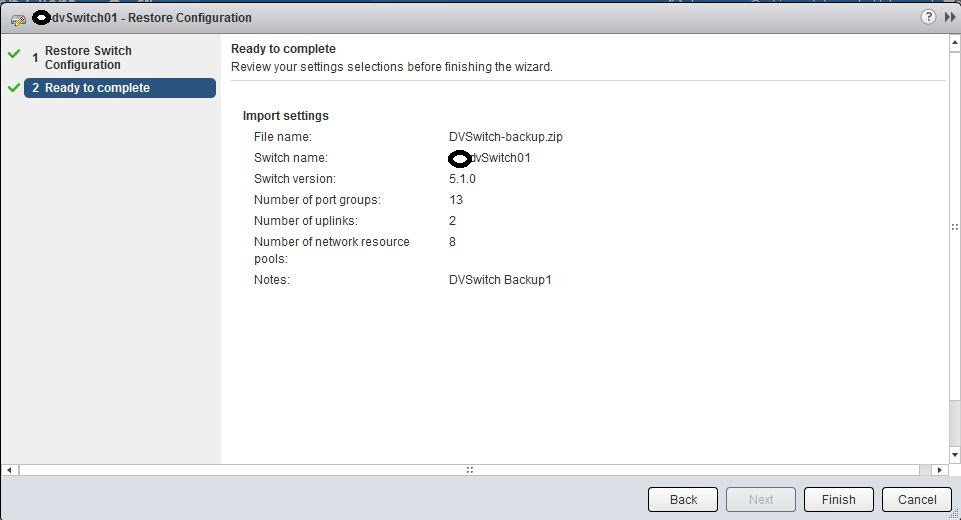 One of the new features of vSphere 5.1 Web Client is to help you backup the settings of your existing Distributed Virtual Switch. You can keep this backup handy for either applying of a new DVSwitch or to restore the settings of the original DVswitch form where you took this backup.