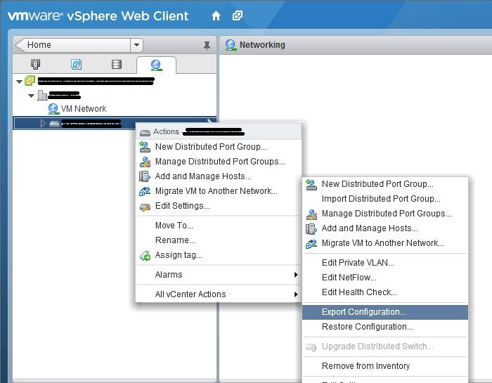 2- Click on Networking -> Right Click on your dvSwitch -> All vCenter Actions -> Export