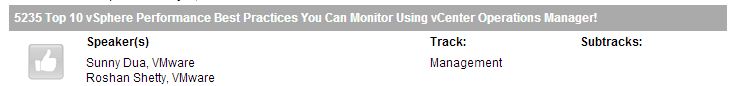 Session Abstract: vSphere performance best practices are the key for a successful operation of a VMware vSphere Environment. Although it is easy to build an environment keeping Best Practices in mind, it is difficult to sustain them as the environment grows. This session would not only help you learn about the top 10 best practices, but also help you understand how you can leverage vCenter Operations Manager to ensure that these Best Practices are being followed at all the times in your VMware Virtual Infrastructure.