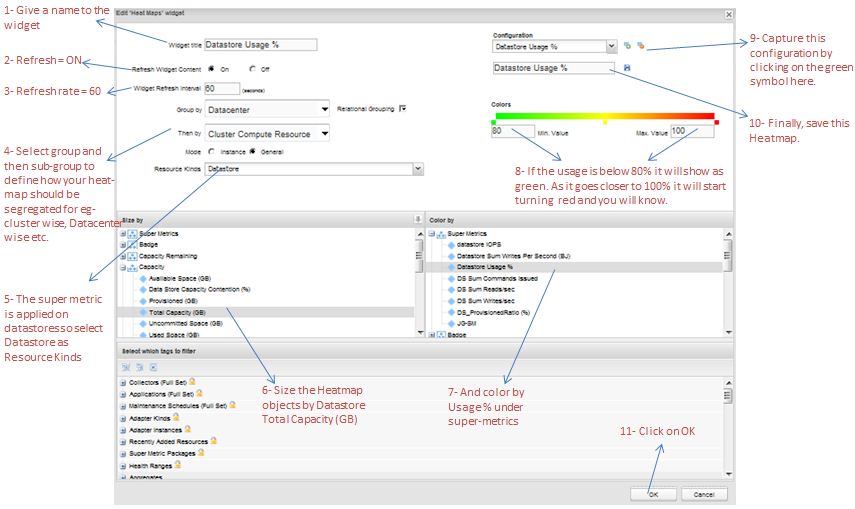 Part 2 – Using vCOps Super Metrics & Custom Dashboards to Display Datastore Usage % !!