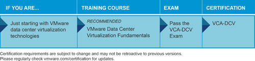 As quoted by VMware – “With the VCA-Data Center Virtualization certification, you’ll have greater credibility when discussing data center virtualization, the business challenges that vSphere is designed to address, and how virtualizing the data center with vSphere addresses those challenges. You’ll be able to define data center virtualization and provide use case scenarios of how vSphere and data center virtualization can provide cost and operational benefits.”