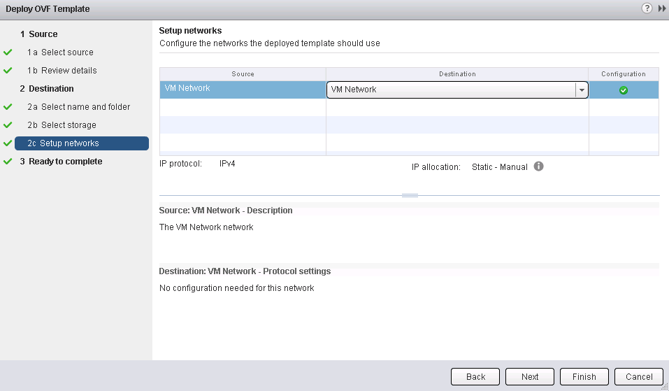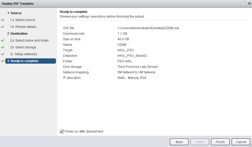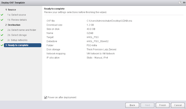 6- Review the settings and click Finish to deploy the OVF.