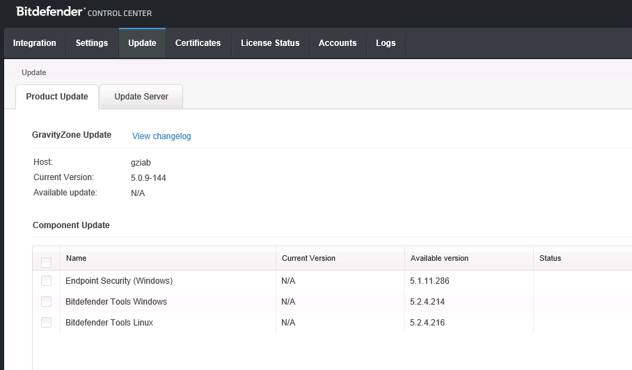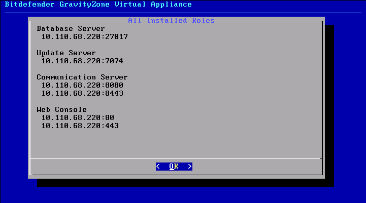 7- If you select option 5 you will notice that all the roles which were deployed separately in Gravity Zone are bundled together in the GZiaB virtual appliance making it a true “IN A BOX” solution.