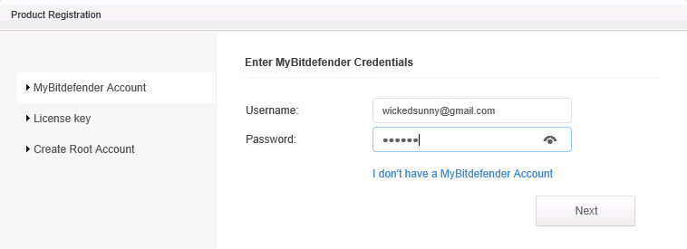 1- Use a web browser to open the web console to configure it. Remember this User Name and Password is for your subscription with BITDEFENDER. Create one if you do not have one by clicking on the link – I don’t have a MyBitdefender Account.