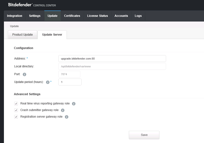12 – Make sure you the correct update settings. You can update the same using the Update Server option.
