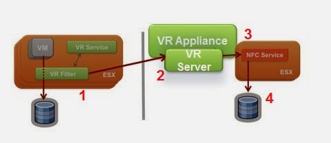 3- VR Appliance in the DR Site passed the data to the ESXi servers in the DR Site using the NFC Service.