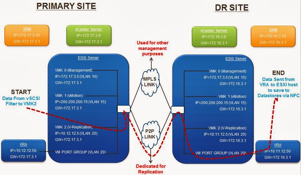 2- This data is sent to DR Site VR Appliance using primary management interface of ESXi server.