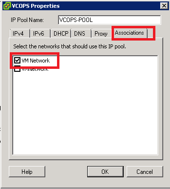 5- Click on Associations Tab to associate this IP pool with the VM portgroup which will serve the IP addresses which will be used by vCenter Operations Manager.