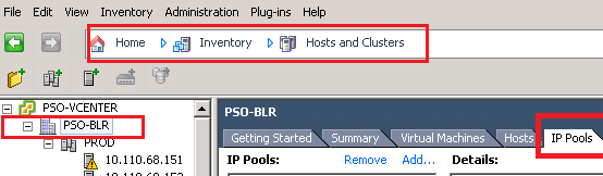 1 – In the vCenter Server click on Datacenter where you need to the deploy the vCOps Appliance and click on the IP Pools Tab.