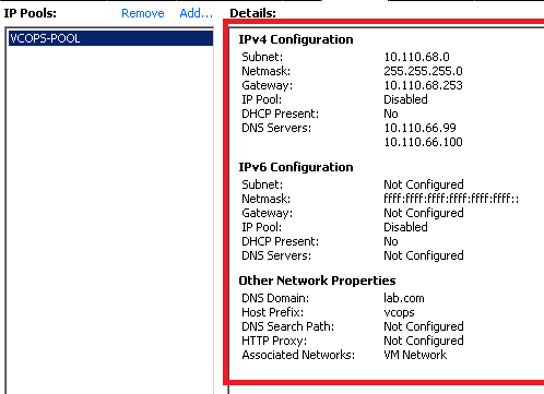 5- You need an IP Pool which is used for giving IP Addresses to a vApp construct. vCOps Virtual Appliance is a pair of 2 VMs which are pre-packaged as a vApp. You can read more about it here.