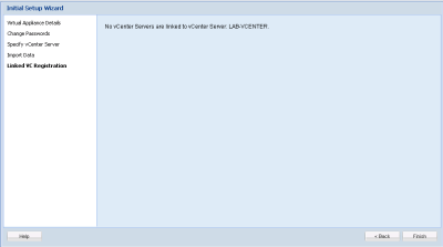 In case you have a non Linked VC which you want to register with your vCOps, you can finish this wizard and register additional VCs on the Admin UI. On the other hand if you want to avoid a Linked VC from registration, you can leave it as it is and click on Finish.