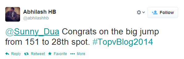 That’s the SECOND BIG RESULT. Needless to say that I jumped onto Eric’s website to check if that was not a typo by +abhilash hb. It was TRUE.. I actually jumped from the 151st spot last year to the 28th SPOT and landed in the TOP 30. It was the jump of 123 places.