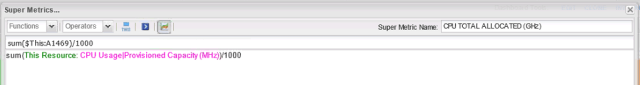 Part 2 – Creating Supermetrics for Cluster Utilization Dashboard in vCOps!