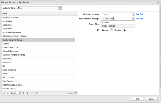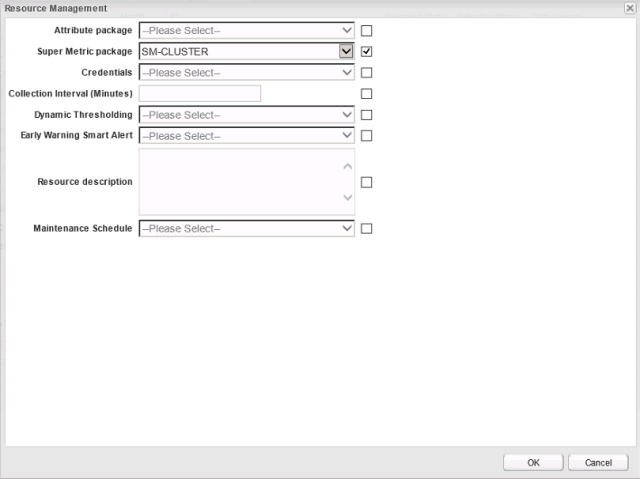 14 – Select Cluster Compute Resource on the Left pane and Select the SM-CLUSTER package under super metric package & click on OK.