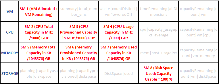 Let’s create the SM 1. Here we need to get the Total VMs a cluster can host, hence to get that number we will add Total VMs deployed so far with the Total Remaining. This is how the formula would look like:-