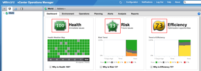 Now let’s look at the same badges on the home screen of vRealize Operations Manager 6.0.