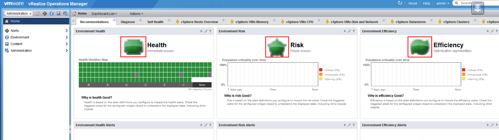Now let’s look at the same badges on the home screen of vRealize Operations Manager 6.0.