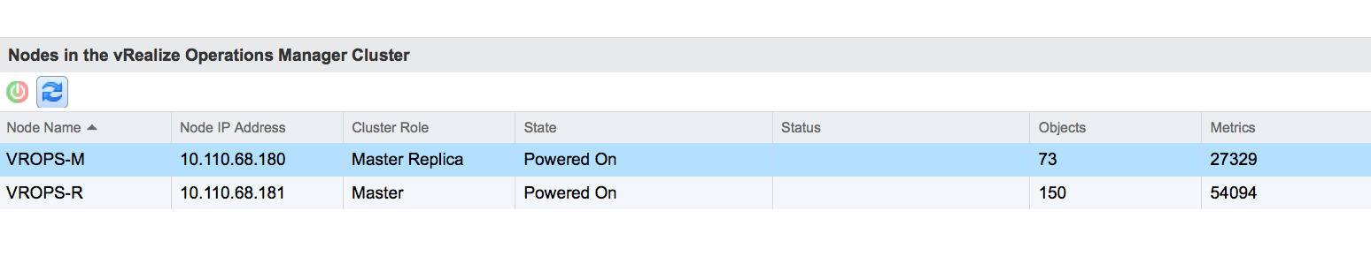 Now you can see that the Replica Node has become a Master Node and vice-versa. We can select the VROPS-M node here and bring it offline.
