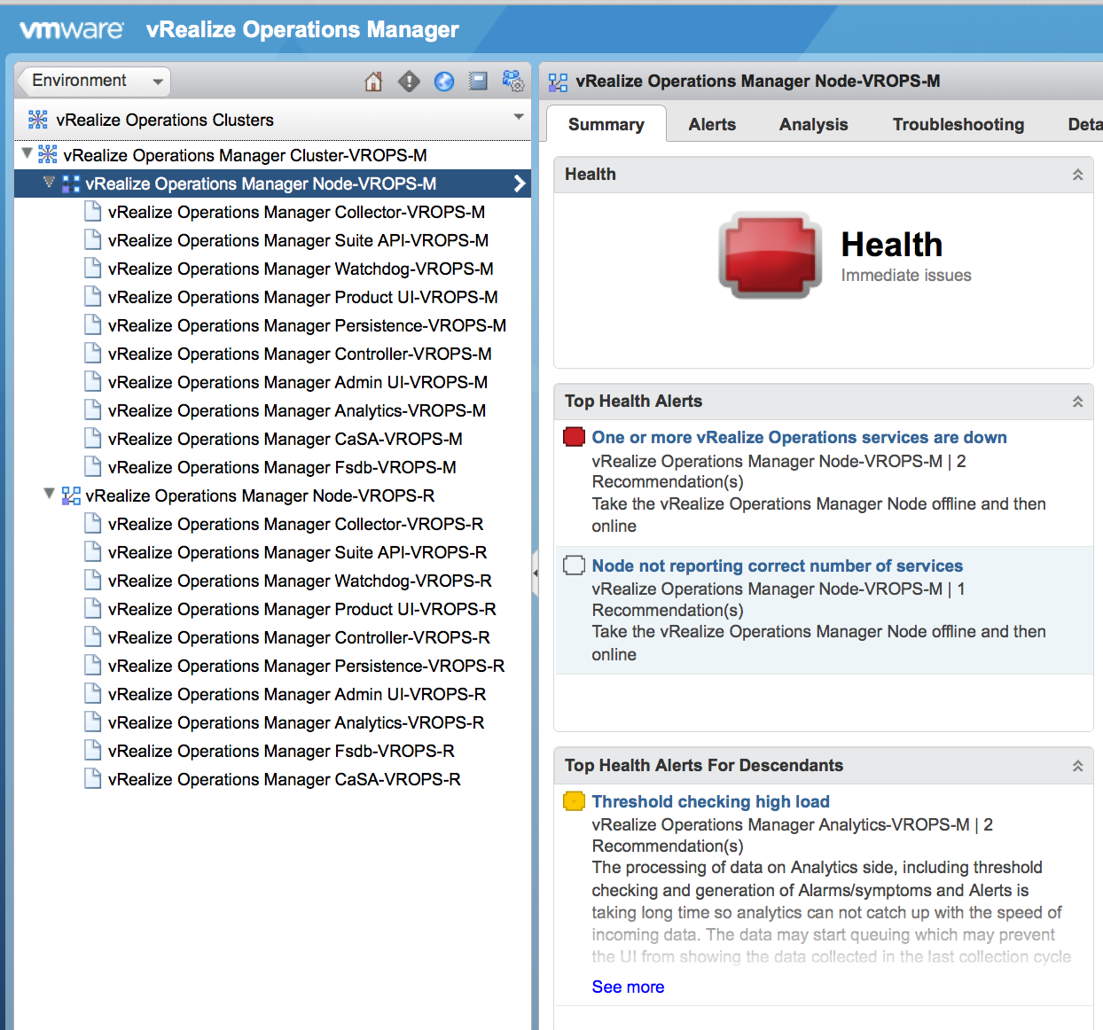 With this post, I will actually share a failure which has been seen in my lab because of a couple of services failing on the master node. This resulted in a fail-over and the Replica switched over to become the Master Server. All this is possible because just like the previous releases, each and every service on your vROps nodes in being monitored by vROps itself.
