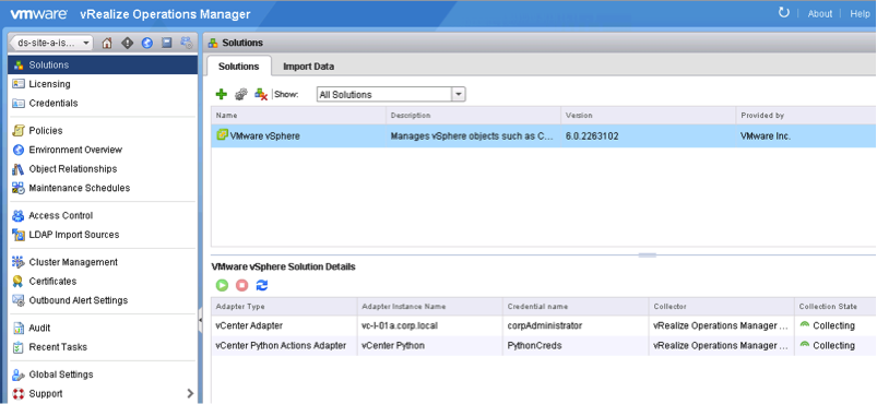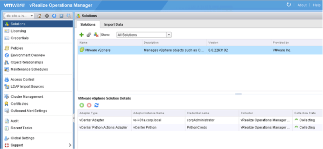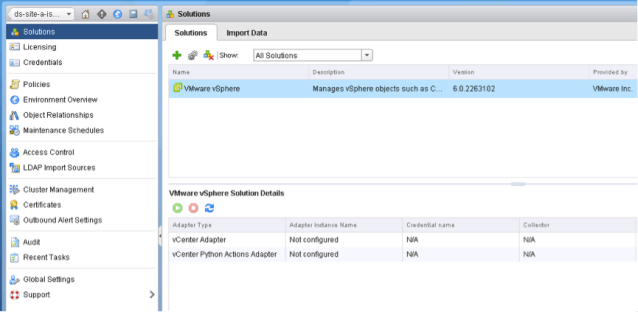 The purpose of this document is to describe, how Configuration Policies in vR Ops are created and how to initiate the Configuration Wizard from scratch, which is usually started just when the product is deployed. Note: This approach does not affect the existing objects. As long as just the Adapter Instances get removed, the objects and its metrics will not be deleted.