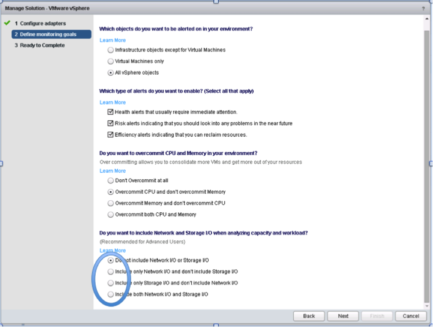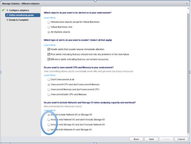 The above statement means that once you setup a vCenter Adapter to monitor a vCenter Server, you would be asked to define your monitoring goals. These monitoring goals basically translate into the default policy which are then applied on all the objects which are being monitored by that vROps instance. When you read the above mentioned article you would understand how this wizard helps you set the policy for the first time. Unfortunately, you can only run this widget once and set the default policy and to make any subsequent changes to the policy, you would have to manually edit the default policy which could be a cumbersome task if you are not well versed with how policy works!While you do not have the option to re-run the wizard, there is a hack which was discovered when this question was asked by my colleague Woflgang Stichel who is a Business Solution Architect at VMware. His question was that one of his customer has not selected the right options while responding to the monitoring goals because of which vROps default policy is not monitoring the datastores at all. He wanted to re-run this wizard somehow to select the right options instead of diving into the policies.