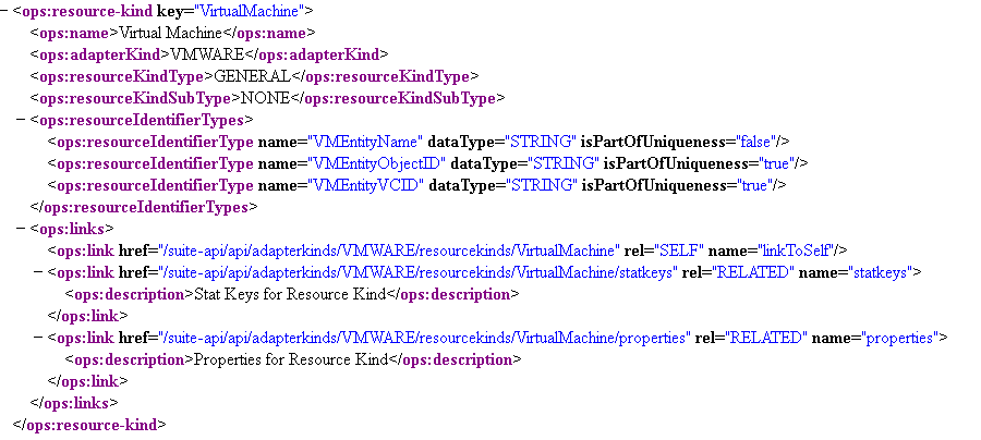 So, now we see all the Object Types available under VMWARE. Note down the resourceKinds key for the Object you want to retrieve metrics. Request now becomes