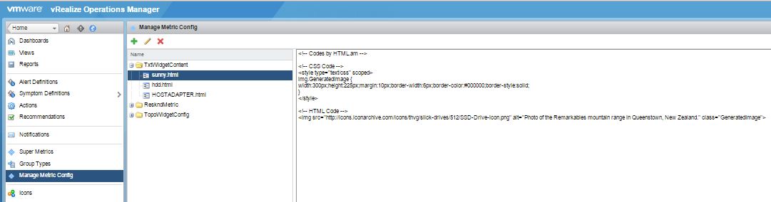 NOTE : PLEASE ENSURE THAT IF YOU DO NOT HAVE INTERNET CONNECTIVITY ON VROPS YOU WOULD NEED TO HOST THE ICONS SOMEWHERE ON AN INTERNAL WEBPAGE AND POINT OT THAT AS <img src= ON ALL THE 3 HTML CODES.