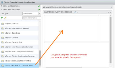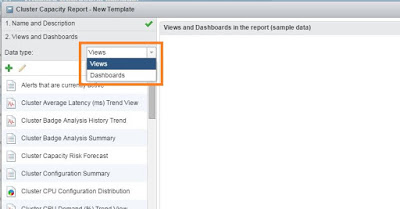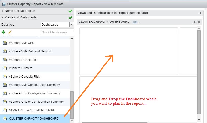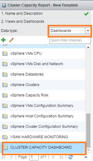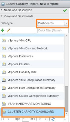 6- Select Dashboard and now you will be able to see all the dashboards which you have in your vROps instance under Data Type. You can see the Cluster Capacity Dashboard here.