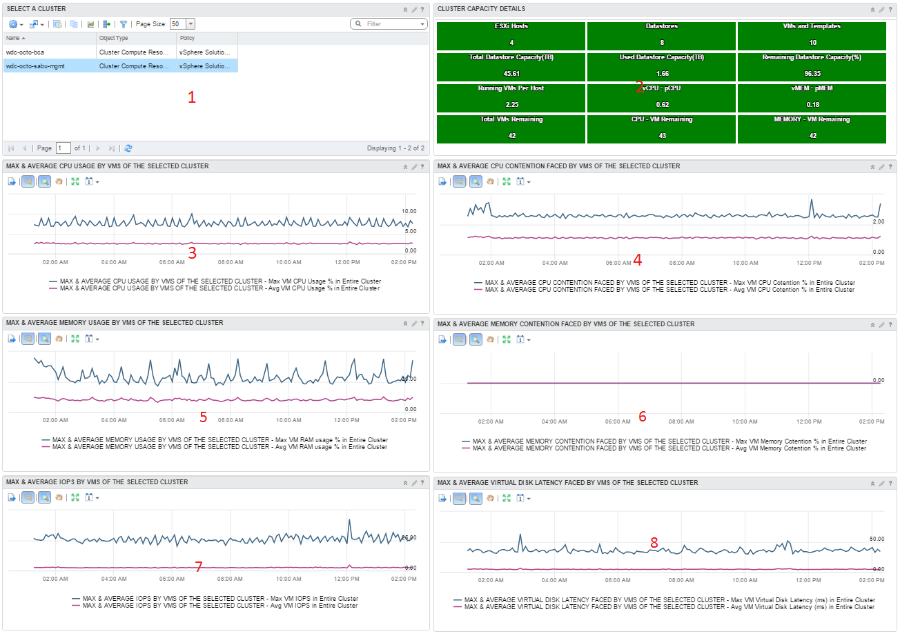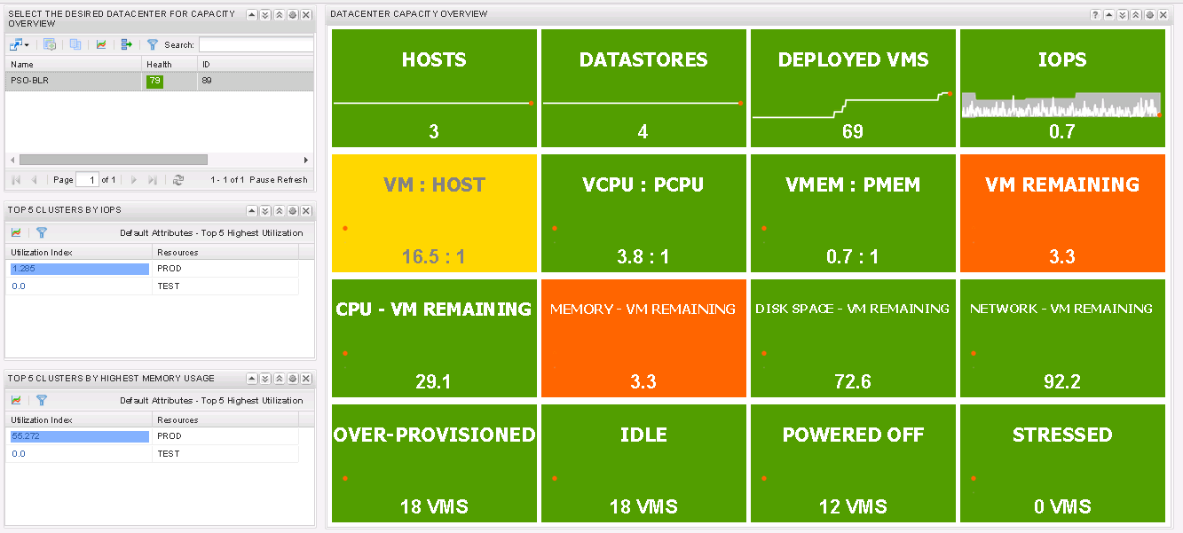 Short Description   :   This dashboard helps you to look at capacity and performance metrics of your virtual datacenter. This provides you a holistic view of the environment.