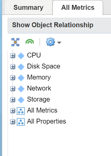 The All Metrics view of the product can easily become complex as it shows you all the metrics which are associated to an Object Type. If you look at vRealize Operations Manager 6.4, the product gave you some OOTB custom metric groups which can be used to list all common metrics around CPU, Memory and Disk. These were the OOTB options and might not fit all the needs. If you are on vROps 6.4, click on a VM object and click on All Metrics and you will see this: