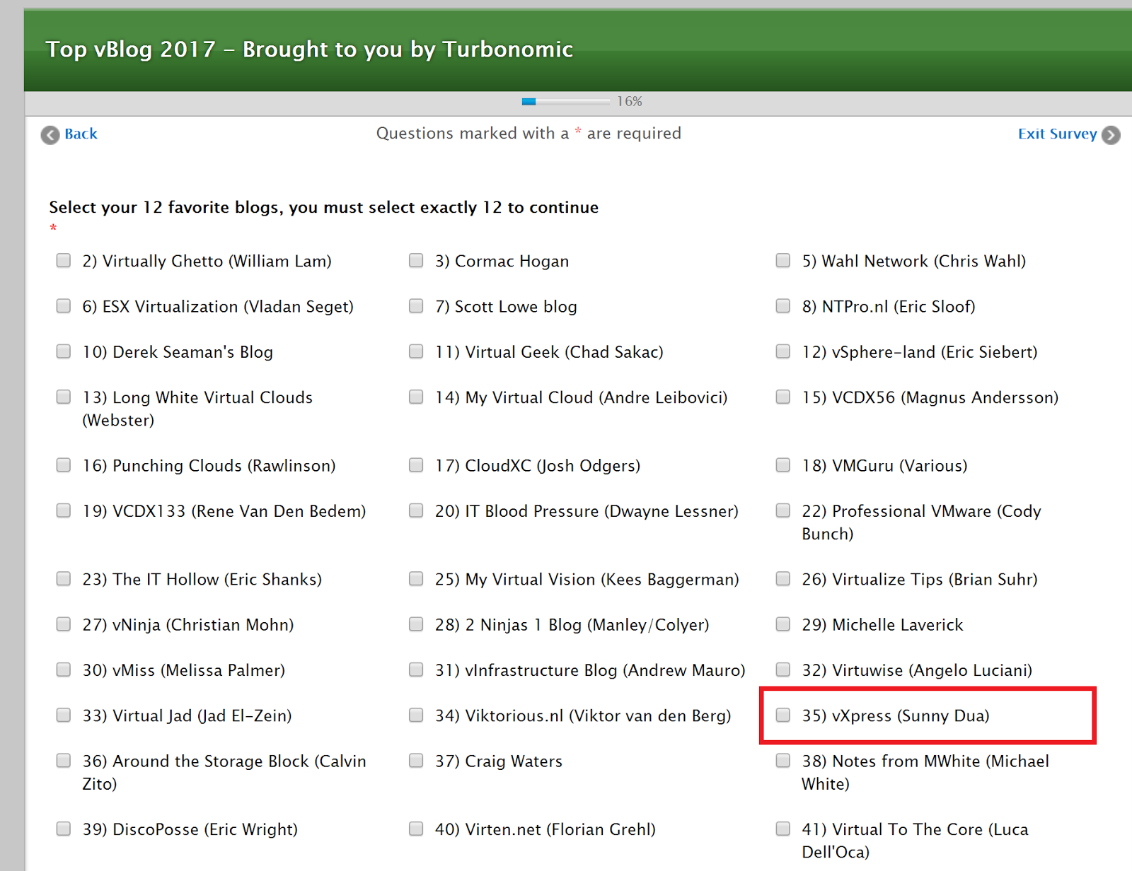 Last year a few folks told me that it was difficult to find my blog, this year around Eric has stacked rank the top 50 blogs and vXpress (35) can be found right on the first page.