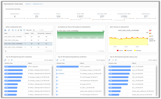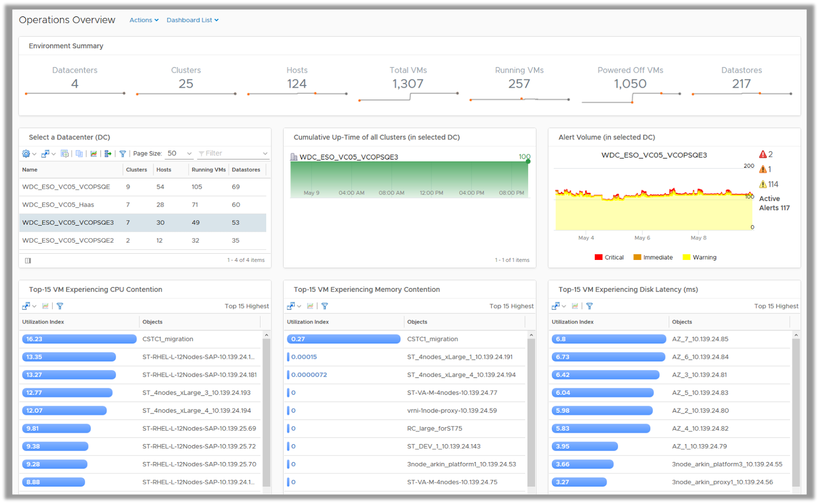 Along with the overall health of your environment, the dashboard also allows you to zoom in at the Virtual Machine level and list out the top 15 virtual machines in the selected datacenter which might be contending for resources.