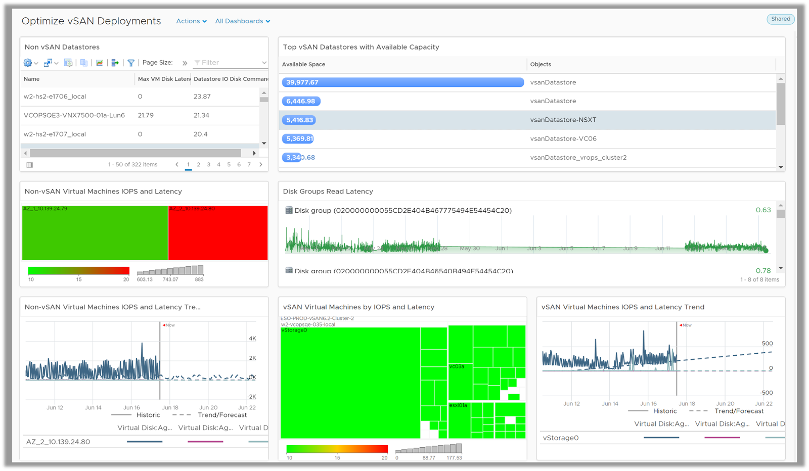 The vSAN Operations Overview Dashboard provides an aggregated view of health and performance of your vSAN clusters. While you can get a holistic view of your vSAN environment and what components make up that environment, you can also see the growth trend of virtual machines which are being served by vSAN.