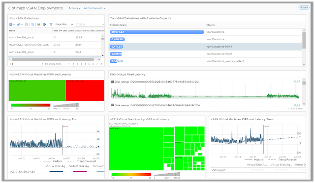 The Optimize vSAN deployments dashboard is an easy way to device a migration strategy to move virtual machines from your existing storage to your newly deployed vSAN storage. The dashboard provides you with an ability to select your non vSAN datastores which might be struggling to serve the virtual machine IO demand. By selecting the VMs on a given datastore, you can easily identify the historical IO demand and latency trends of a given virtual machine.