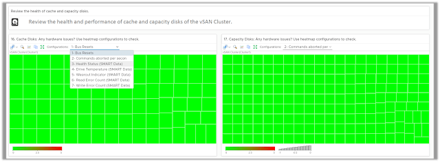 Once you select a cluster, you can list all the known problems with all the objects which are associated to that cluster. This includes, clusters, datastores, disk groups, physical disks and most importantly the virtual machines which are being served by the selected vSAN cluster.