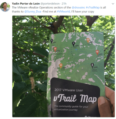 Druva Inc. whom I recently worked with on a very cool project of creating a vTrailMap. This map can help you immensely with your jouney to the cloud 🙂 More details can be found by meeting Yadin in the exhibition area. You can find him on twitter. Here is his tweet about the vTrailMap