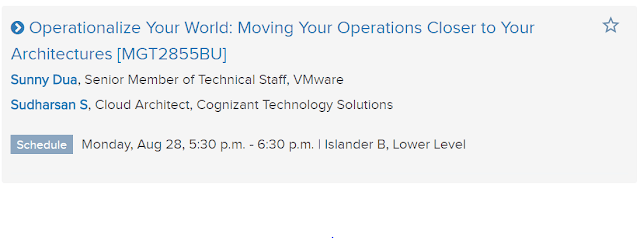 TAM (Technical Account Managed) customers, I will be available in the TAM Central in VMVillage presenting on a couple of topics. These are exclusive events for TAM customers and you need to speak to your TAM to attend these. The first one will be with Iwan. This is a 2 hour deep dive workshop which will talk about Architecting Operations in this new ERA. The learning’s from this session would be applicable to your work as soon as you are back to office from VMworld 🙂