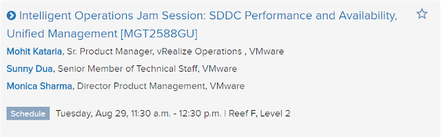 In another session (Group Discussion), I will talk about how we help customers run production operations with vRealize Suite. This is a JAM session where we would welcome all the feedback you might have from your experiences of using the