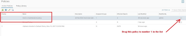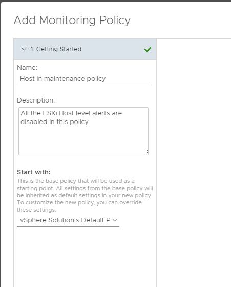1- Create a new policy in vROps named “Hosts in maintenance policy”. This policy can be created under the default policy.