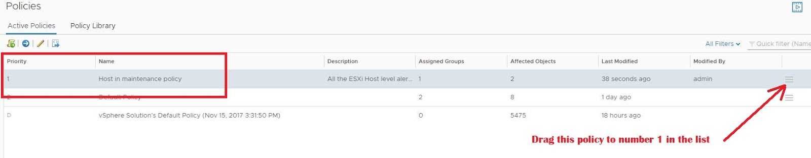 10 – Finally go into Administration -> Policies -> Active Policies and set the newly created policy at priorty 1 rank.