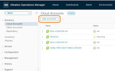 With vRealize Operations 8.0 which has been announced at VMworld US 2019, one of the key features which would help you to easily configure endpoints to monitor such as vCenter, AWS or Azure is Cloud Accounts.