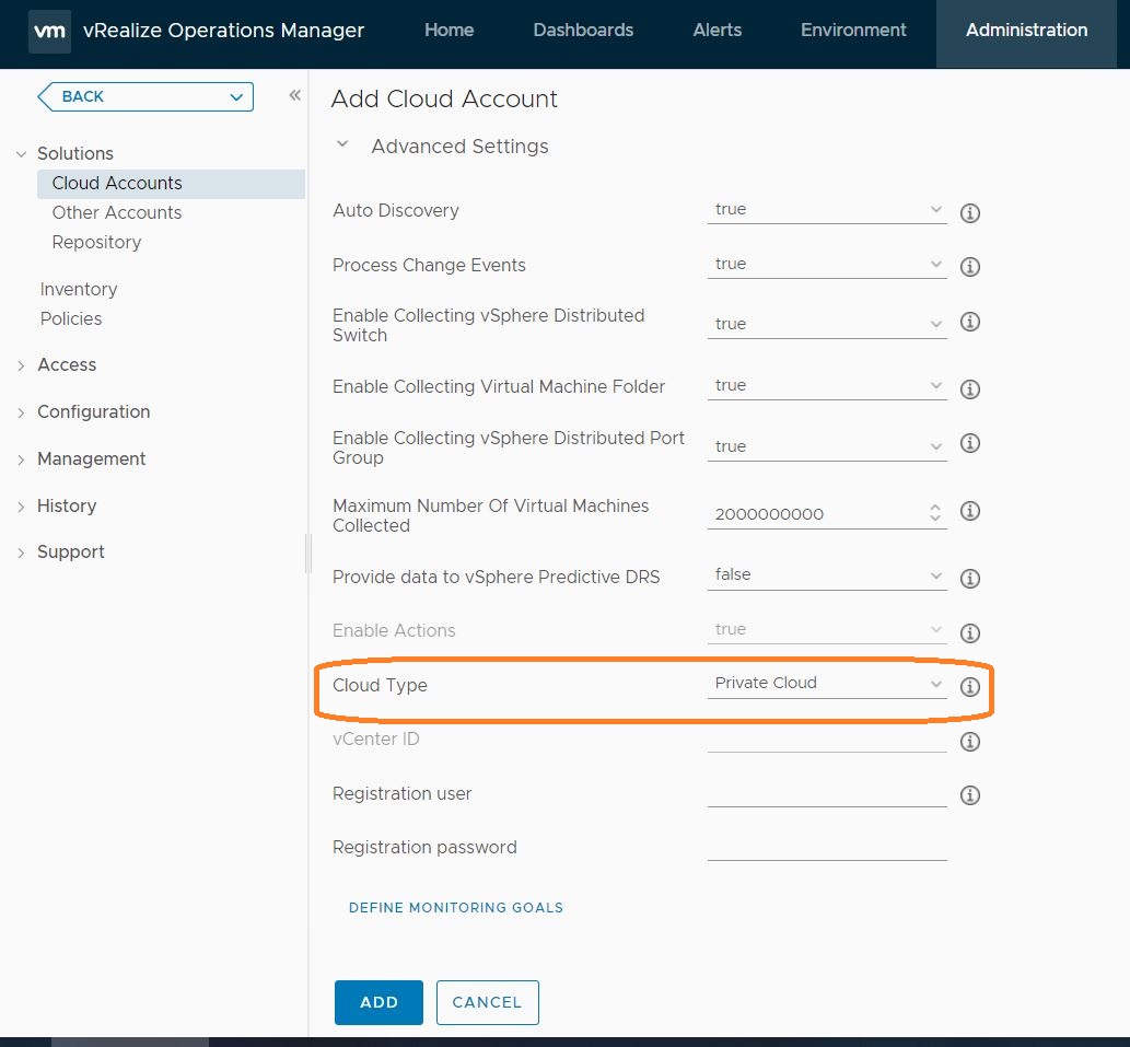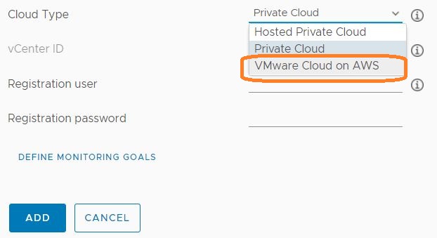 Choosing the right cloud type is important to ensure that vROps understand the vCenter endpoint and apply the correct business logic for use cases such as compliance, costing and monitoring.